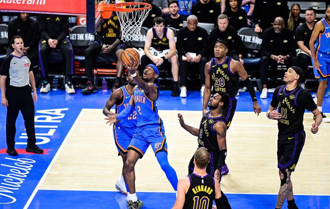 比赛甫一开始,湖人便在攻守两端全面失序,首节便落后23分;进入第三节后,分差骤然飙升至45分,比赛早早失去悬念。全队始终未能找回节奏,球员动作迟滞、配合生硬,整场如同被雷霆牢牢压制于半场之内,毫无反击余地。