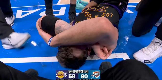 湖人今天以96比139客场惨败给雷霆,而比输球更糟糕的,是东契奇的突然受伤。第三节比赛,东契奇持球进攻,在无对抗的情况下突然捂住了自己的大腿后侧,疼到倒地。