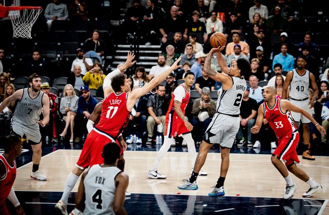 马刺是真的有冠军相没有文班亚马他们的攻防层次一点没降低,面对有伦纳德的快船打得游刃有余,福克斯首节3中3+三分1中1拿到8分3篮板3助攻,卡斯尔4中3+三分1中1拿7分2篮板2助攻,这两个后卫就撕裂了快船防线,马刺首节领先9分。